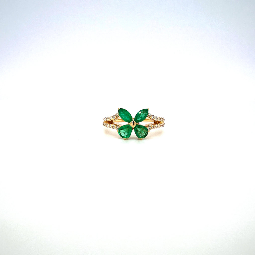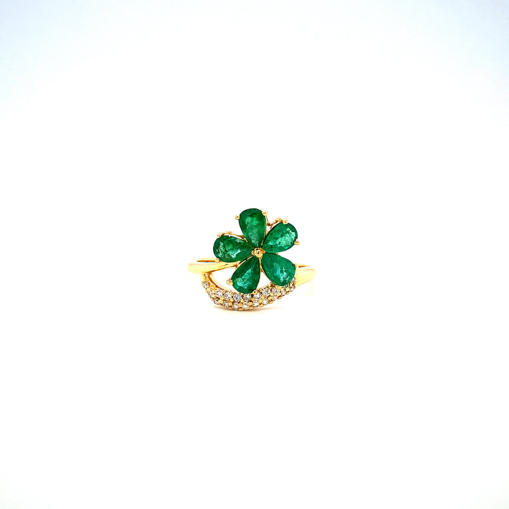 - White gold with emerald and diamond-studded rings in floral shape is a must for your collection. This is a beautiful piece of ring that goes well with all your dresses.