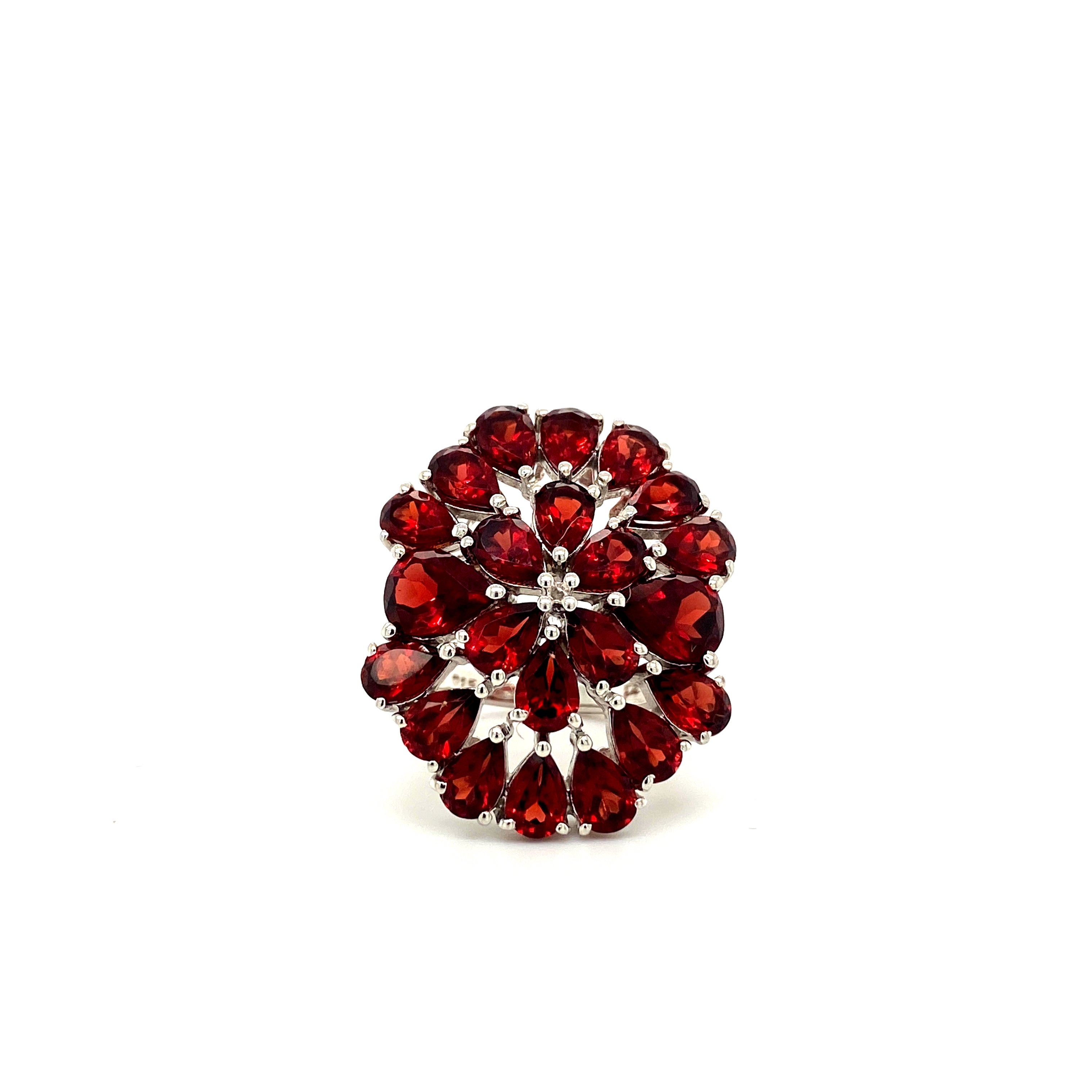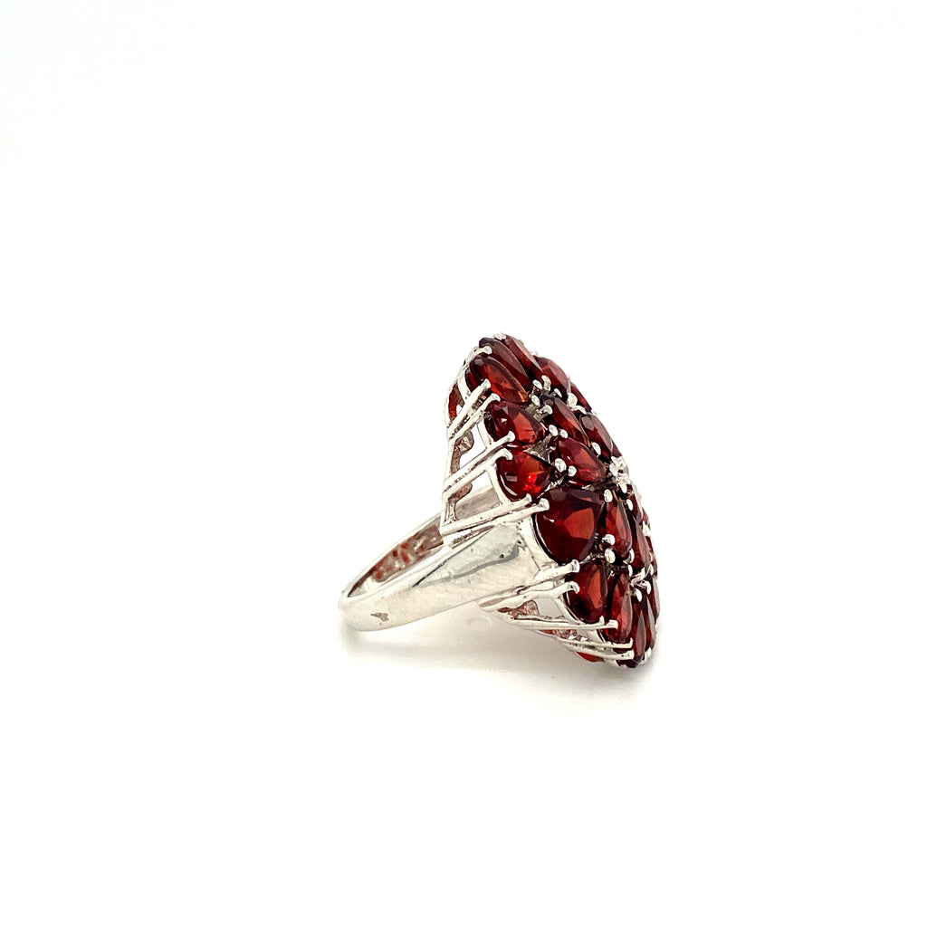 An abstract fashion ring made with a variety of garnets that makes for a great conversation starter at parties.
