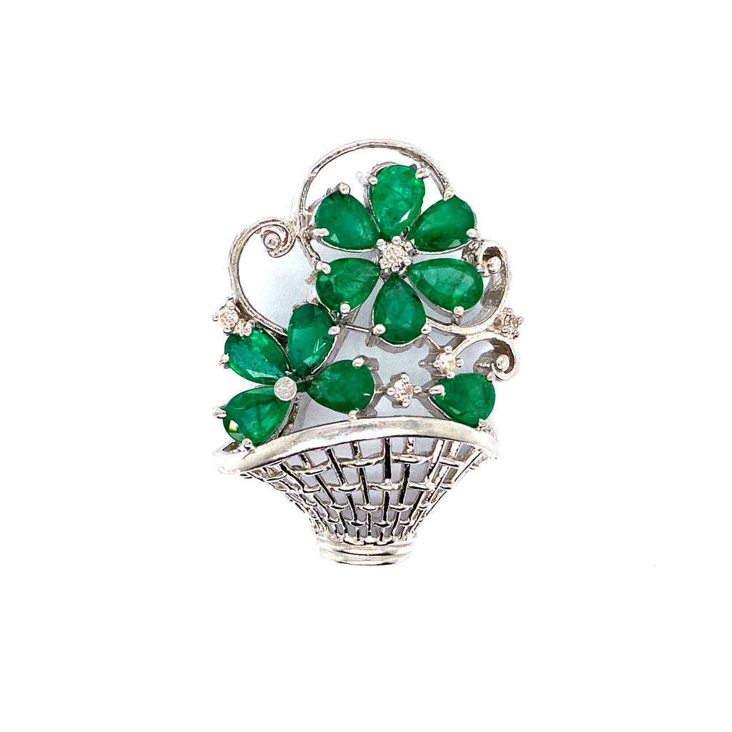 Every fashion-loving woman likes to wear this brooch made in Emerald sterling silver (KSBR 77364). This brooch is a perfect symbol of ethnic and traditional jewelry, with Emeralds’ round and Marquise in shape.