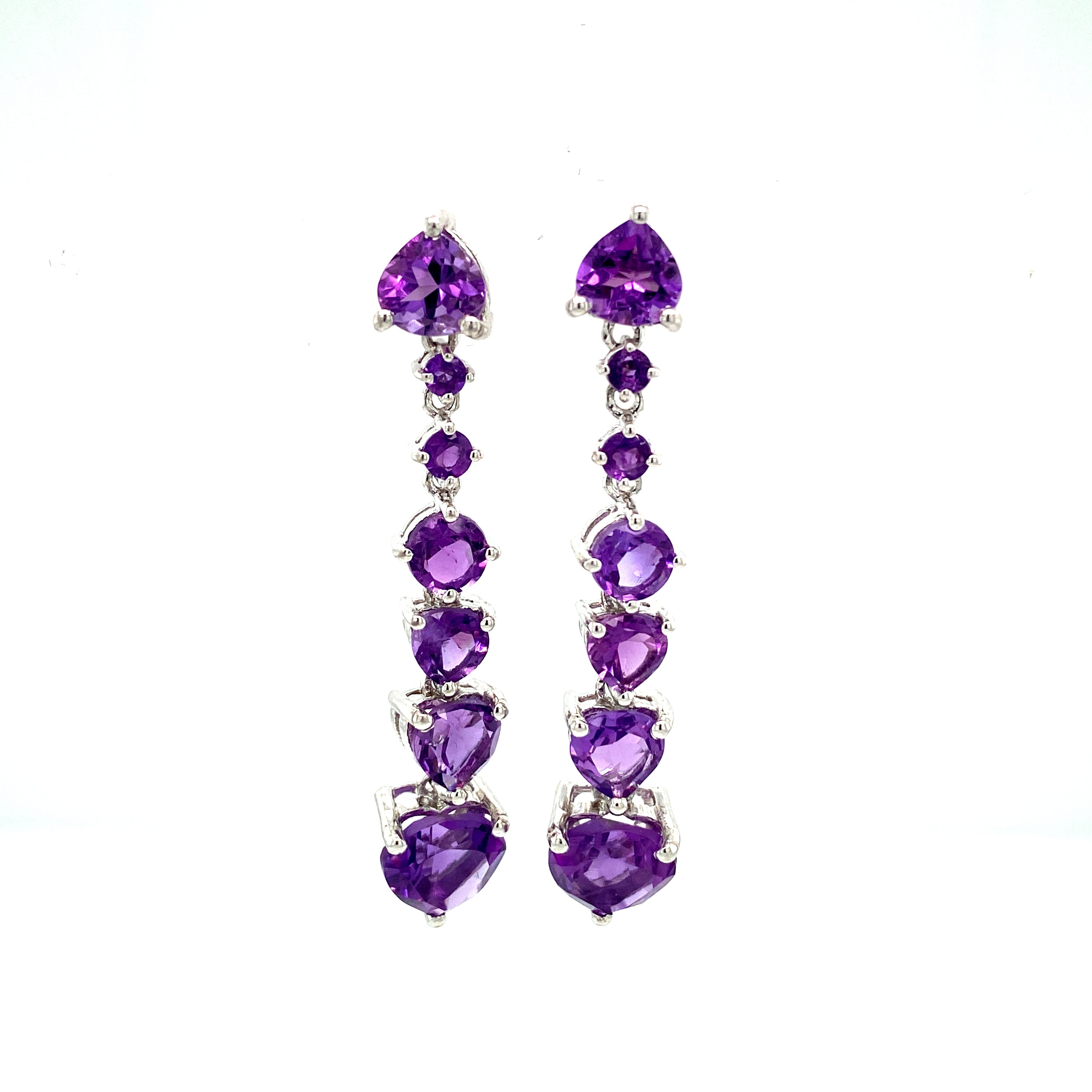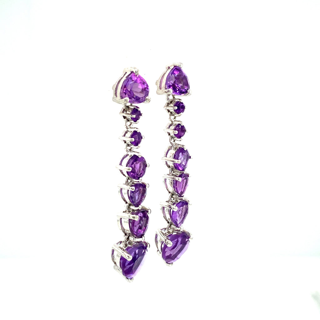 A contemporary twist on the drop earrings. Made of prong-set round and heart cut amethysts precisely joined together.