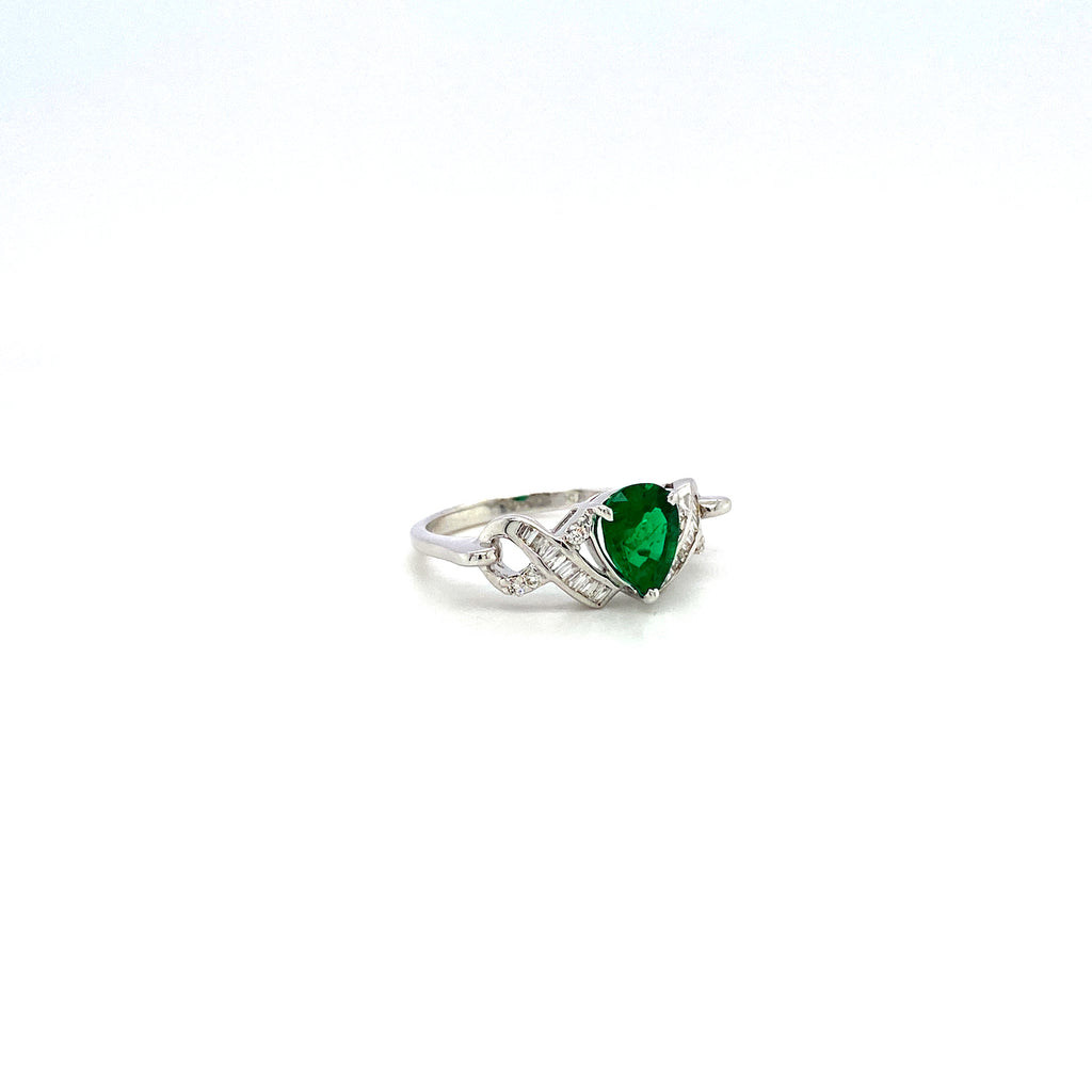Emerald and Diamond Ring in 18K White Gold - KGR 15863