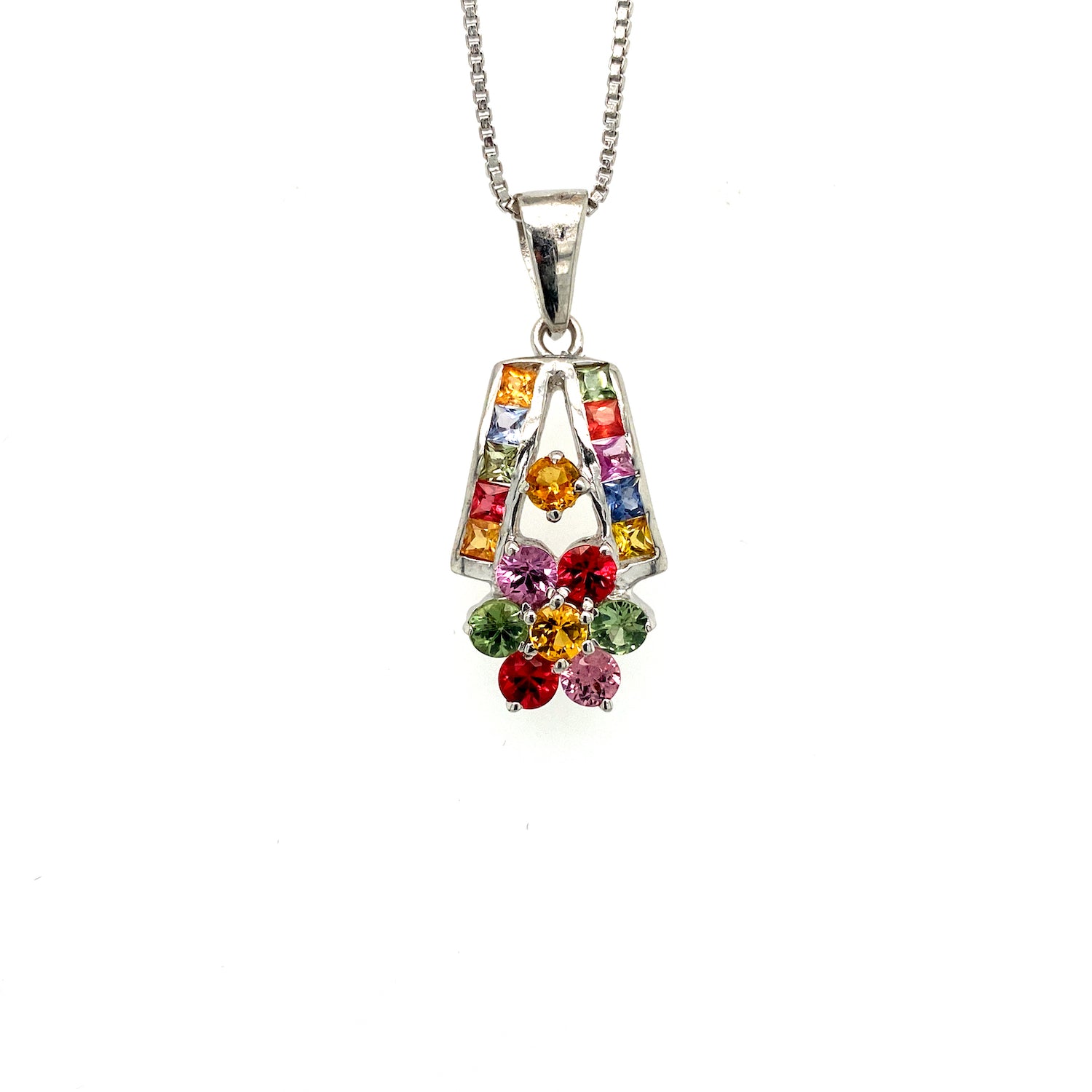 Multi Sapphire Pendant in .925 Sterling Silver - KSP 36817