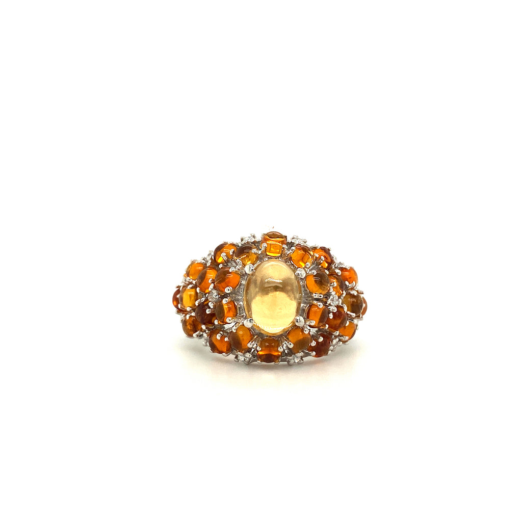 Multiple citrines coming together to form this statement ring that creates a buzz while being light on the hands.