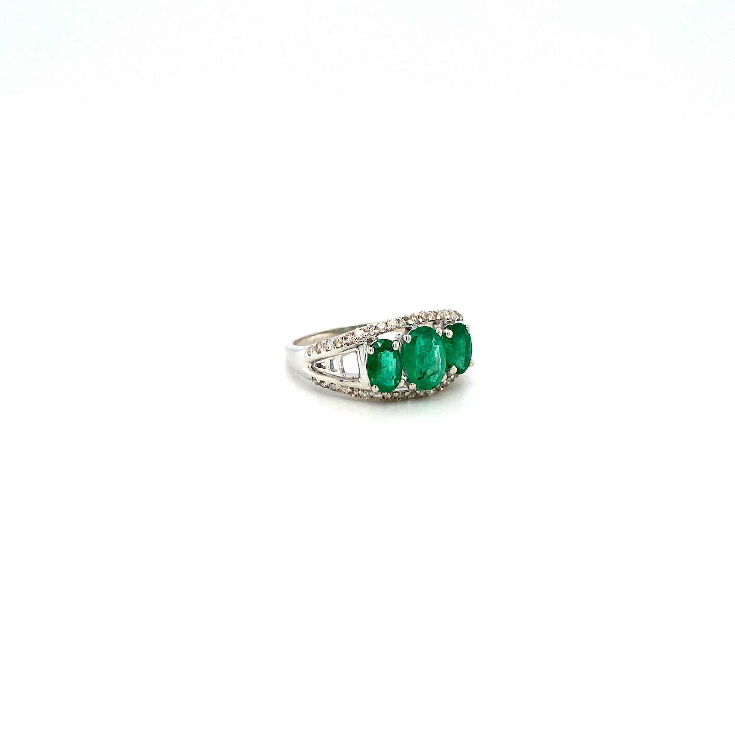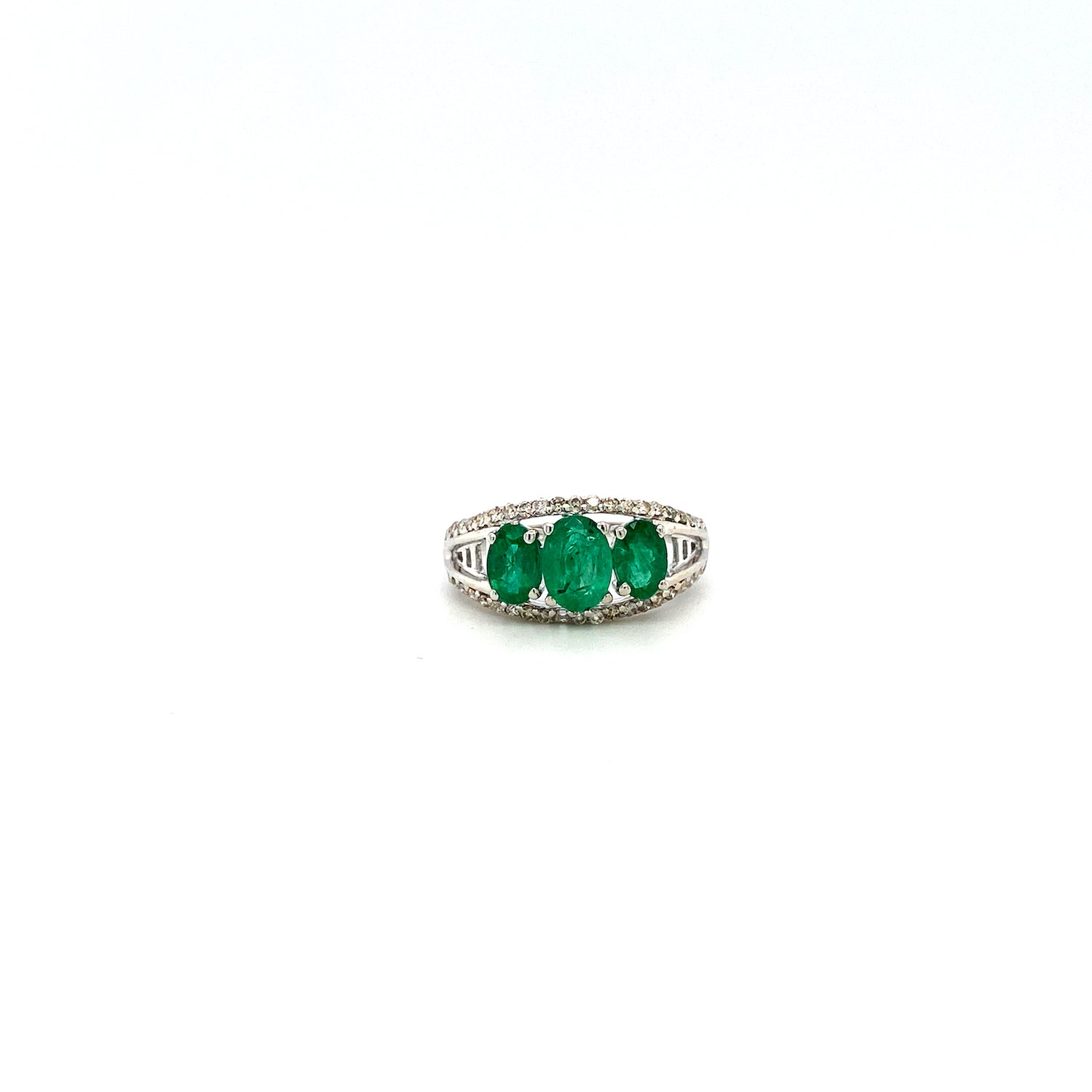 Emerald and Diamond Ring in 18K White Gold - KGR 15153