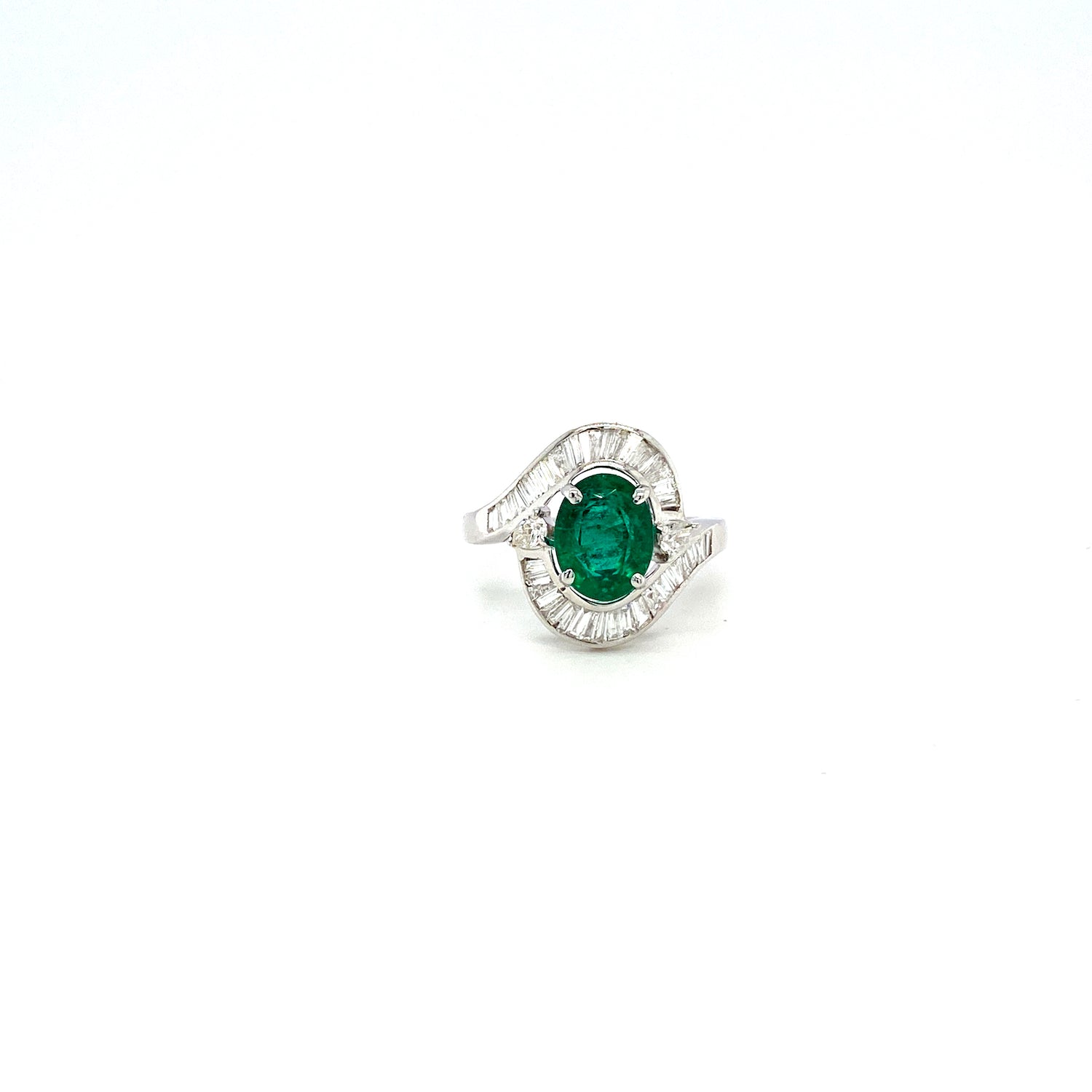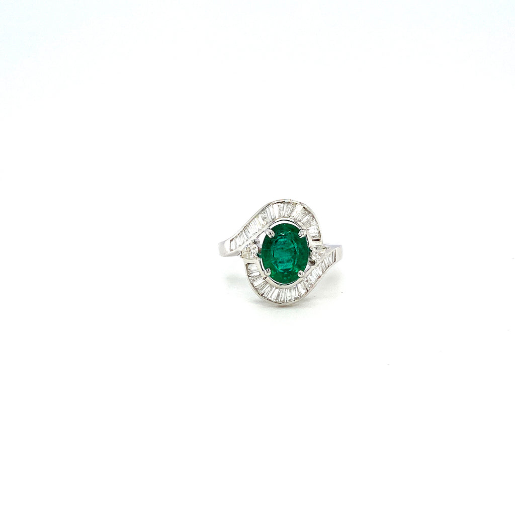 Emerald and Diamond Ring in 18K White Gold - KGR 16531