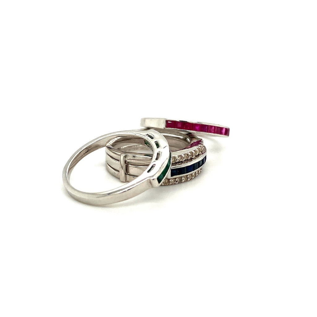 Multi Colour Stones Ring in .925 Sterling Silver - KSR 19312